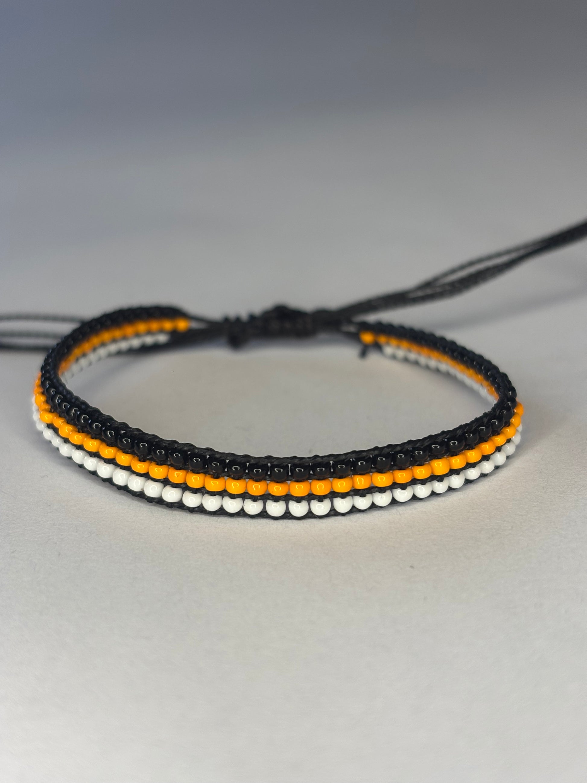Introducing the "Harvest Moon" bracelet! With its blend of black, orange, and white beads, this accessory captures the magic of autumn nights. Perfect for adding seasonal flair to any outfit, it’s your go-to piece for celebrating the beauty of harvest and glowing like a full moon!